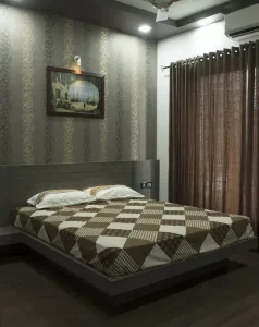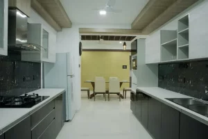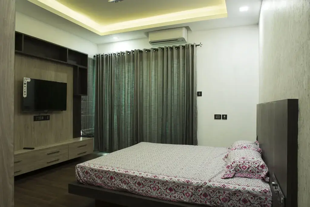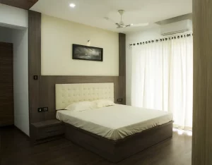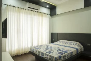 Window shutters: Prefabricated colour anodised aluminum sliding shutters by BHORUKA Aluminium Products. One pane of Insect screen also shall be provided in each window. Door Frames: Main door frame and shutter shall be of seasoned teak wood. Outer and Inner face to be PU coated and finished as per the Architects design. Door Shutters: All internal door frames shall be of seasoned teak wood / hard wood with flush door shutter by BARAUSSE from ITALY. All internal and external faces shall be melamine finish or Paint finish as per the Architects design. Hardware: All hardware shall be in C.P Brass, tower bolts, doorstoppers, ball bearing hinges. Locks shall be mortise of DORSET / YALE make from USA. Entrance door shall have hardware such as, Magic Eye, Safety Chain, Door Stopper and a BIO Metric lock from YALE. All lintel heights and Doors are at a height of 240 cms (8’).