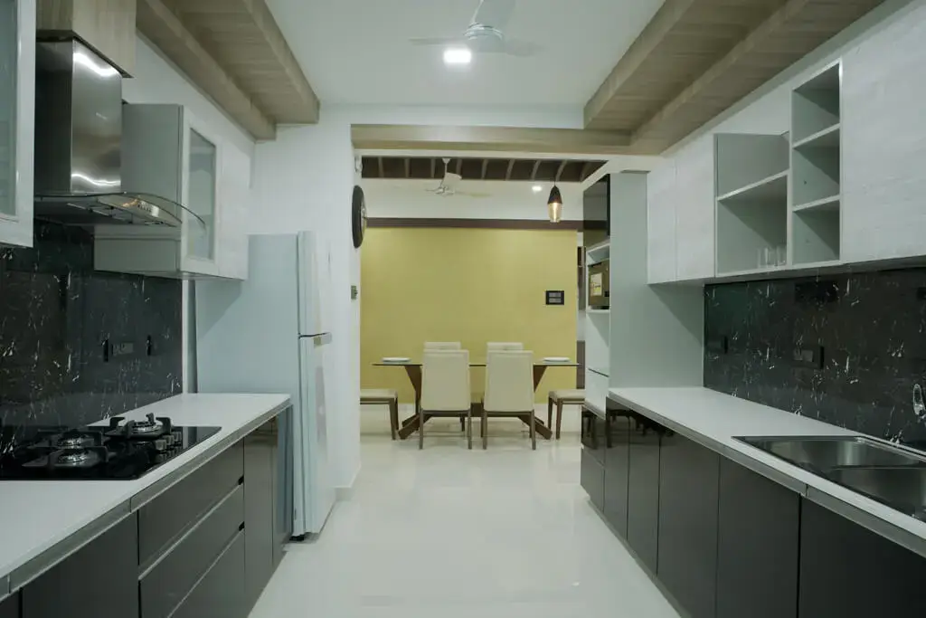 Main entrance lobby, Lift lobby and Lift fascia (wall & floor) using composite marble / granite / vitrified tiles, as per the architect’s design. Staircases using granite / vitrified tile flooring with hand railing using matt finished SS / MS with or without toughened glass as per architect’s design. Car park Area : Grano flooring with grooves or exterior grade paving tiles. Foyer / Living / Dining using 80cm X 80cm Premium Double charged vitrified tiles (using H&R johnson / Asian). Kitchen: 60cm X 60cm premium double charged Vitrified tiles for the flooring (using H&R johnson / Asian).All Bed Rooms : Laminated wooden flooring AC4 Grade (Quick Step from Belgium). All Bed room Toilets : Designer ceramic tile concepts 30cm X 30cm for floor and 60cm X 30cm for walls up to ceiling height of 8’ 0 for the wet areas and upto 4’ height for the dry areas. Above 4’ height shall be using imported wall papers (tiles used shall be Graffiti Designer range). Toughened glass sliding partitions between dry and shower (wet) areas, (using Jaquar prefabricated fixtures). Servants Toilet : Ceramic tile 30cm X 30cm for floor and 30cm X 45cm for walls upto 8’0” height (using any premium Indian brands). Utility Room : 30cm X 30cm for floor and 30cm X 45cm for walls upto 4’6” height and 2’ above the counter if any (using any premium Indian brands). Balconies / Open Terraces / Decks : Rustic / antiskid / ceramic tiles 30cm X 30cm or Timber decking with MS / SS / Toughened Glass railings upto 1.2M heights (using any premium Indian brands).