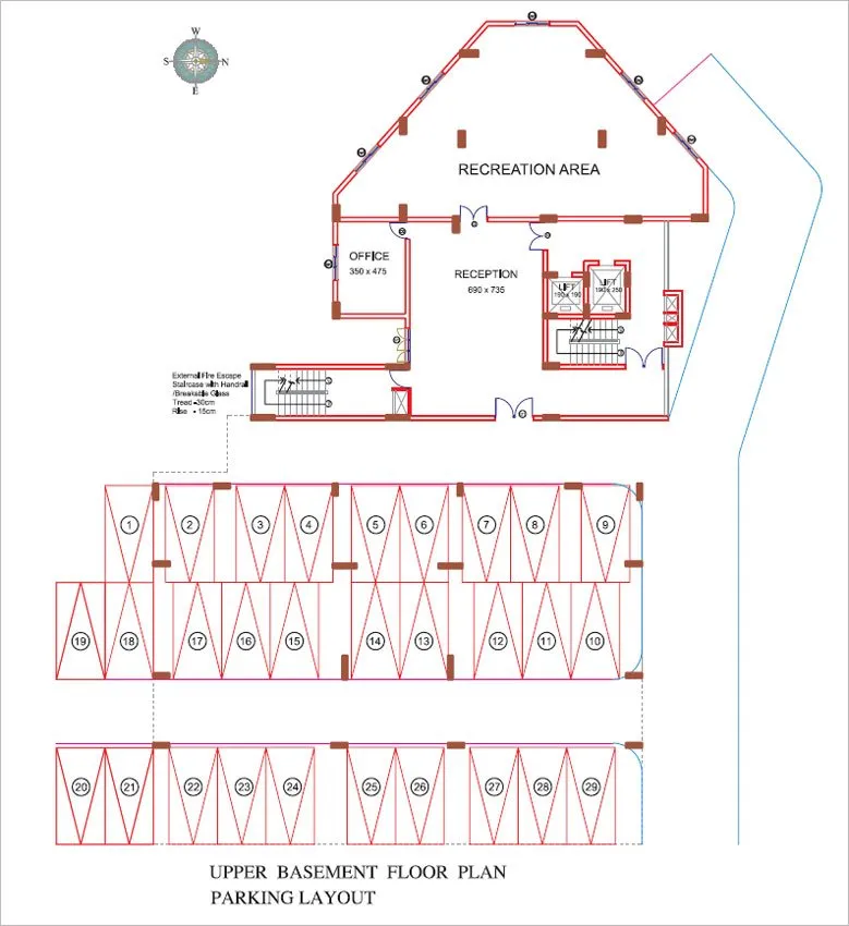 Fire fighting arrangements as per the national building code and Kerala fire fighting department norms; Every floor provided with hose reel, emergency push fire alarm button, speakers etc.