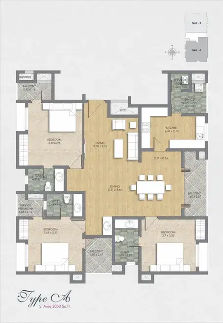 Concealed wiring with superior quality PVC insulated copper cables and Clipsal neo c-metro equivalent modular type switches, adequate light & fan points, four 16A power plug points controlled by ELCB & MCB, independent energy meter for each apartment provision for geyser connection in all attached toilets, provision for washing machine in work area and provision for Internet connection in any one bedroom.