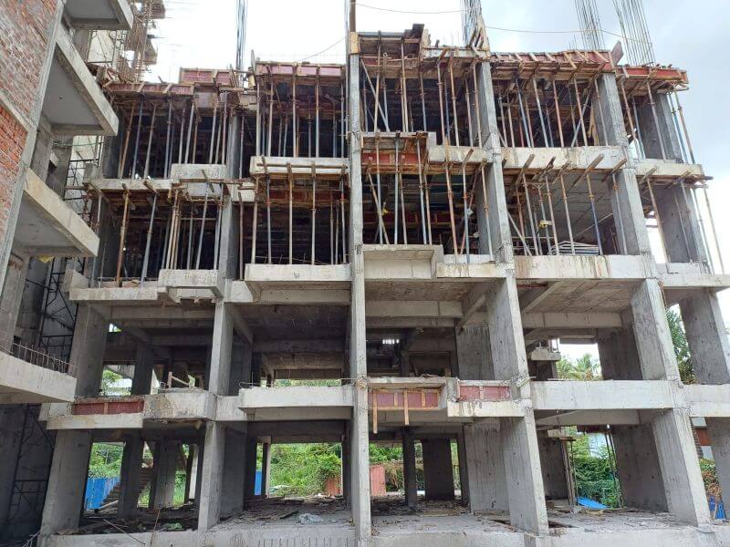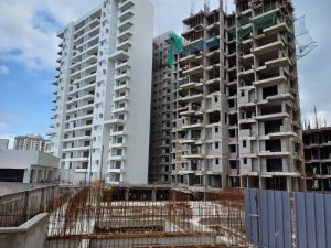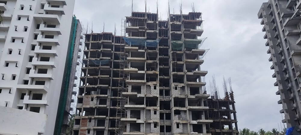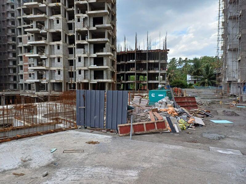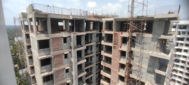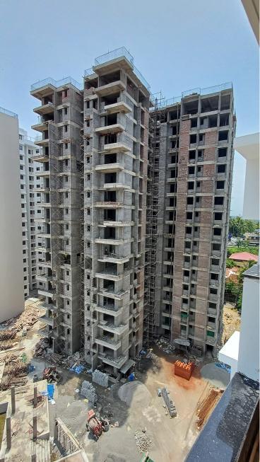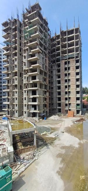 - Structural Works – Footings – 95 nos completed out of 95 including lift, Raft slab completed – 95% completed, Roof slab – Stilt 2 level roof slab 90 % completed, Stilt 1 – roof slab 90% completed, Roof slab podium – 80% completed, Podium slab pool area except STP area – wall of pool deck completed, Level 1 to 13 – Type A, B, C & D flats completed, Level 5,6,7 Flat E & F completed