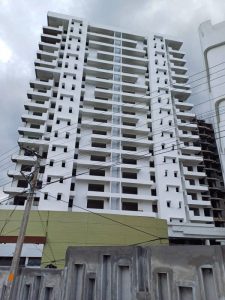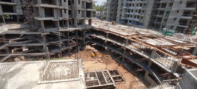 - Structural Works – Footings – 122 nos: completed out of 136 nos:, Basement slab @ 101.35 – 65% completed & Basement slab @ 104.35 – 75% completed, sub structural works – 75% completed, slab completed – up to 17th level 100% Completed, 18th level (roof slab – terrace) – completed, Stair case roof slab, LMR base slab, Water Tank base slab – completed