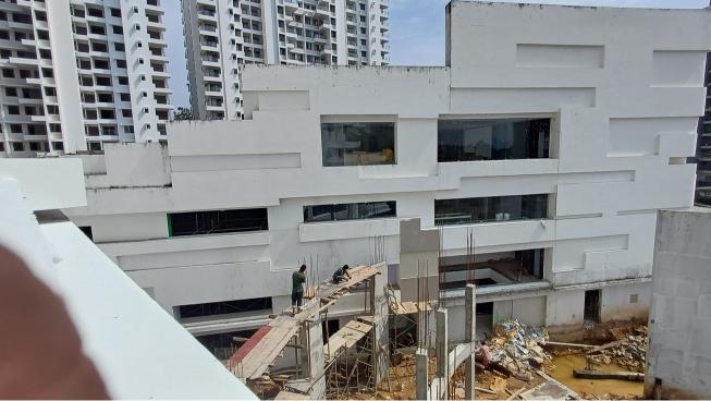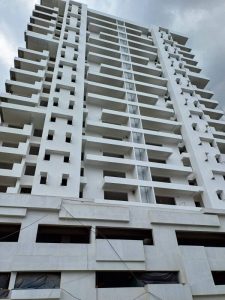 - External Finishes- Sliding doors and windows – level 3,4,5,6,7,8,9,10,11 – 80% completed, External plastering – completed, External painting – south, east, west & north side, light well area above lobby first coat painting completed, east side primer and putty – 50% completed, west side primer & putty work completed, light well damp proof and 1st coat painting completed