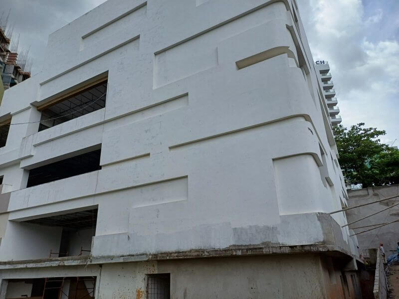 - External Finishes – A & D front area external plastering completed, Service lift rear side external plastering completed, A flat rear side m bed external plastering completed, D Flat rear side palstering completed