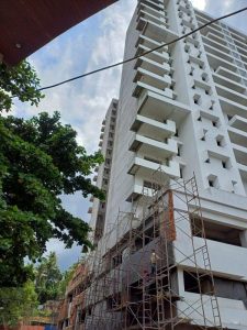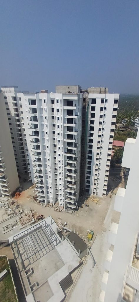 - Internal Finishes- Door frame fixtures – (126 flats) 95% completed, Main door fixing – level 3,4,5,6,7,8 9 completed Putty and painting works -Level 2 to level 17 – 95% completed, level 17 -40% completed,Waterproofing (level 2 to 17) all toilets in bedrooms & balcony completed, terrace floor 98% completed,OHT – completed, podium level – 40% completed, Wall Tiling – Level 3 – level 12 – 95% completed, Level 2,12,14,16 progressing Floor tiling – level 3 – level 12- 95% completed, Level 2,12,14,16 progressing HANDRAILS -Main stair Handrail completed,Fire stair handrail-95%completed