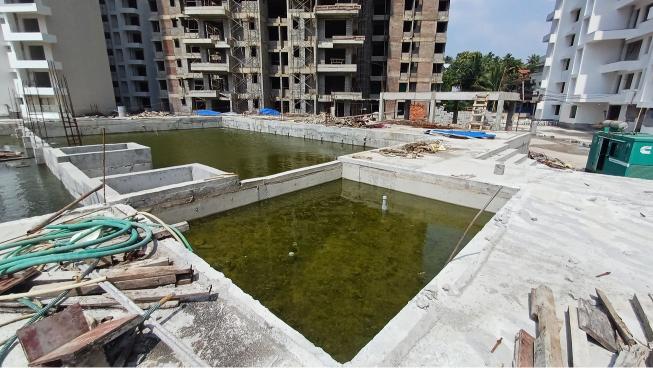 - External Finishes – A Flat External Side facing Water Tank Side, B Flat Facing Swimming pool to be completed