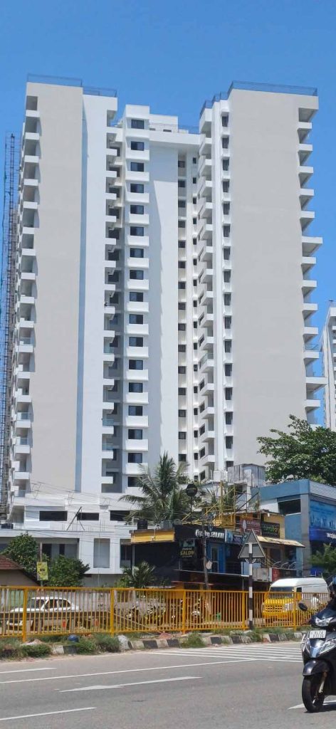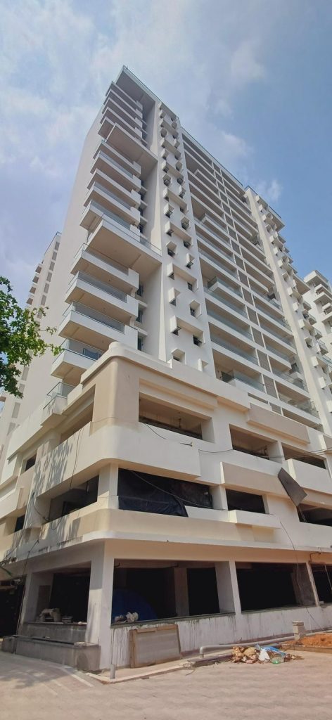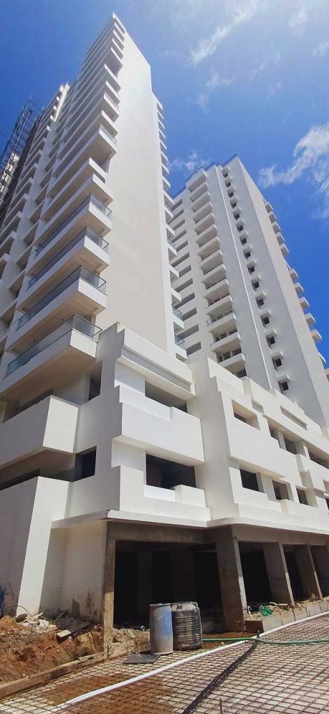 - Final Finishes- Door shutters and iron mongery – Main door shutter & aluminium windows for lvl 3,4 ,5,6,7,8,9 & 10 fixed Final painting – First coat painting – level 3,4,5,7,8 .9,10,11 100% completed,Plumbing & sanitary ware – vertical duct lines from level 1 to 17 -70% completed ,CP Fixtures 4 flats completed ,Electrical final fixtures – switches and sockets12 flats completed Firefighting final fixtures -12 flats completed