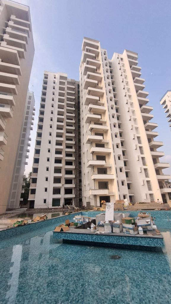 - Final Finishes – Door shutters – 100% completed, Final Painting – 90% completed, CP & Sanitaryware – (82 flats) 60% completed, Electrical final fixtures – 88% completed, Fire fighting final fixtures – 100% completed