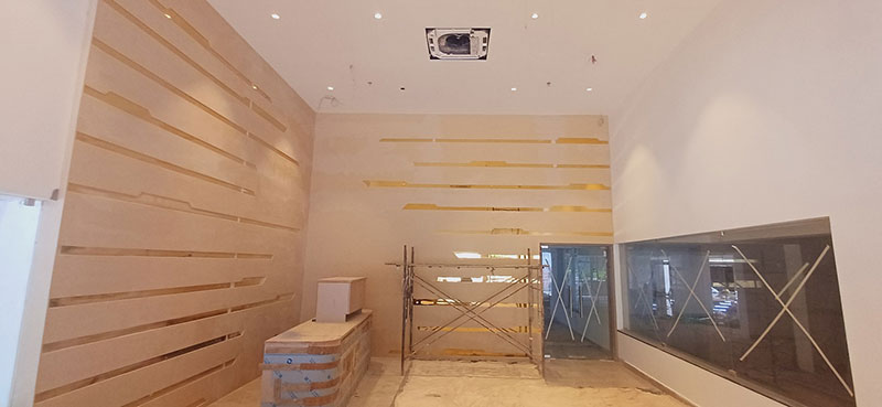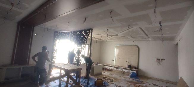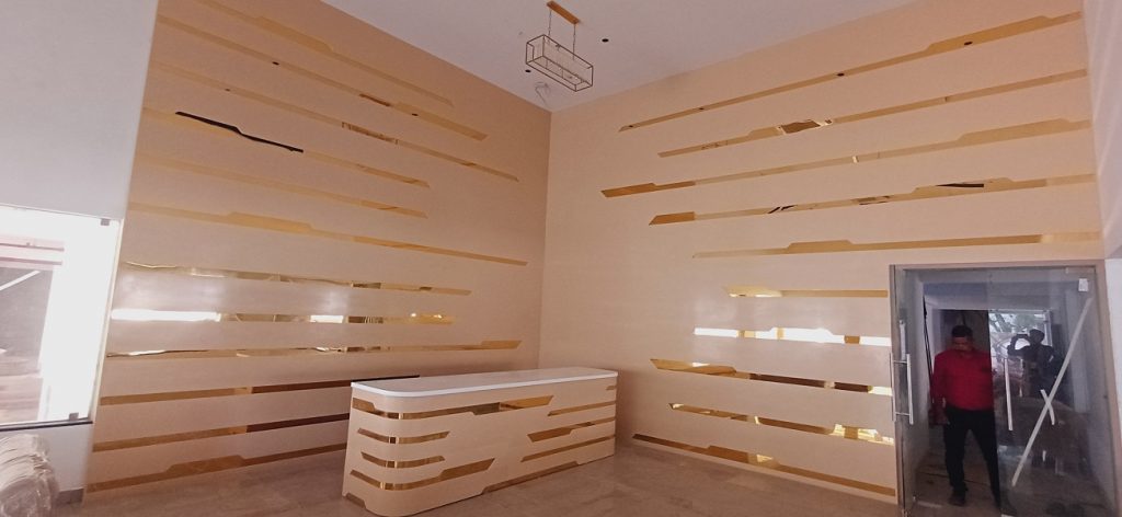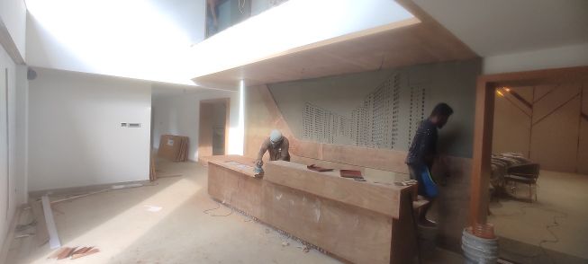 - Interior work – Interior ceiling work – 100% completed, Wood work – completed, Furniture -30% completed, painting (PU) – 100% completed