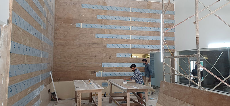 - Interior work – Interior ceiling work – 50% completed, wood work – 25% completed