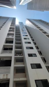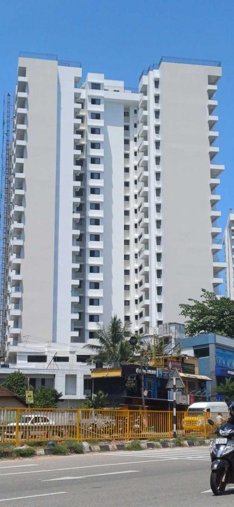- Final Finishes – Door shutters and iron mongery – Main door shutter & aluminium windows for lvl2, 3,4 ,5,6,7,8,9 ,10& 11 fixed Final painting – First coat painting – level 3,4,5,7,8 .9,10,11 100% completed,2,12,14 in progress ,Plumbing & sanitary ware – vertical duct lines from level 1 to 17 -70% completed ,CP Fixtures 14 flats completed ,Electrical final fixtures – switches and sockets14 flats completed Firefighting final fixtures -14 flats completed