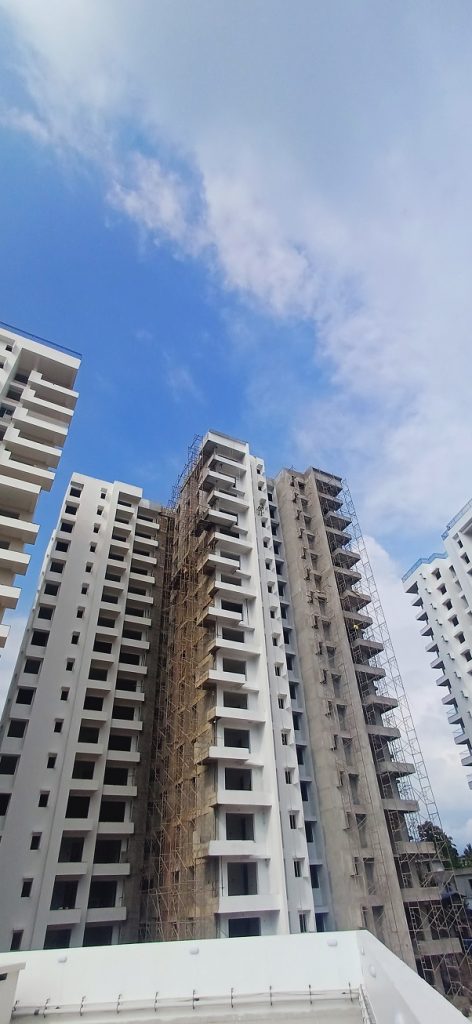 - External Finishes – AB External Side facing Tower A 100% completed,A Flat External Side facing Water Tank Side, B Flat Facing Swimming Pool works in progress,CD Mbed Side Plastering 100%,C Flat Left Side Mbed 20%, MEP Shaft A&B 60%, MEP Shaft C&D 10%