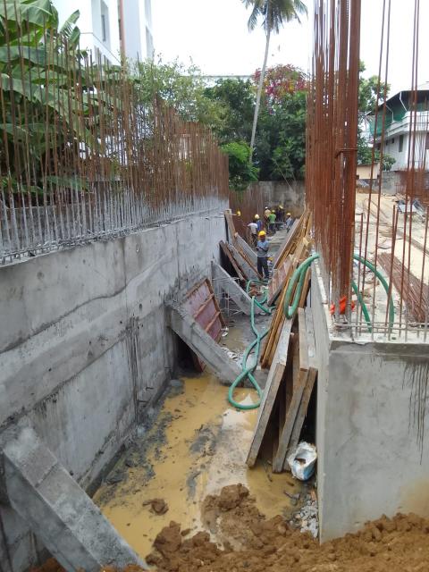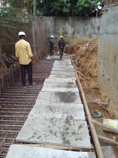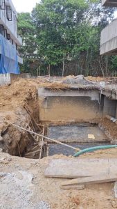 - Sub Structural Works – Earth back filling – 60m3 to be completed, pile chipping – 11 more nos: to be completed, pilecap RCC – 1m3 to be completed, Column and shear wall RCC 20m3 to be completed, retaining wall RCC – 20m3 to be completed, Basement floor Roof slab RCC – 85m3 to be completed, GF roof slab 75m3 to be completed