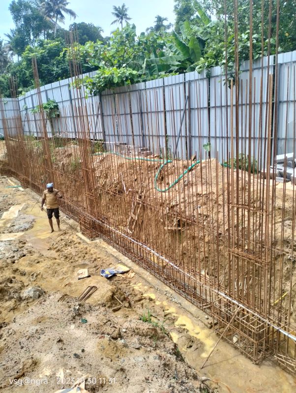 - Sub Structural Works – Earth work – 245m3 to be completed, pile chipping – 14 more nos: to be completed, PCC work – 25m3 to be completed, pilecap RCC – 42m3 to be completed, plinth beam and raft slab – 70m3 to be completed, Column RCC – 10m3 to be completed, retaining wall RCC – 8m3 to be completed, Boundary wall RCC – 22m3 to be completed, Roof slab RCC – 95m3 to be completed