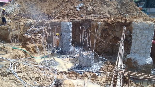 - Sub Structural Works – Sub structural works – Pile concreting 111 Nos: completed, Pile integrity test – completed , Pile chipping 62 nos: completed out of 111 Nos:, Excavation of pile cap foundation – 1041m3 completed out of 1300m3, PCC for pilecap – 88.6m3 completed out of 255m3, RCC for pile cap – 148.1m3 completed out of 325m3, RCC for plinth beam and raft slab – 131m3 completed out of 381m3, RCC retaining wall 33m3 completed out of 125m3, column RCC – 27m3 completed out of 800m3