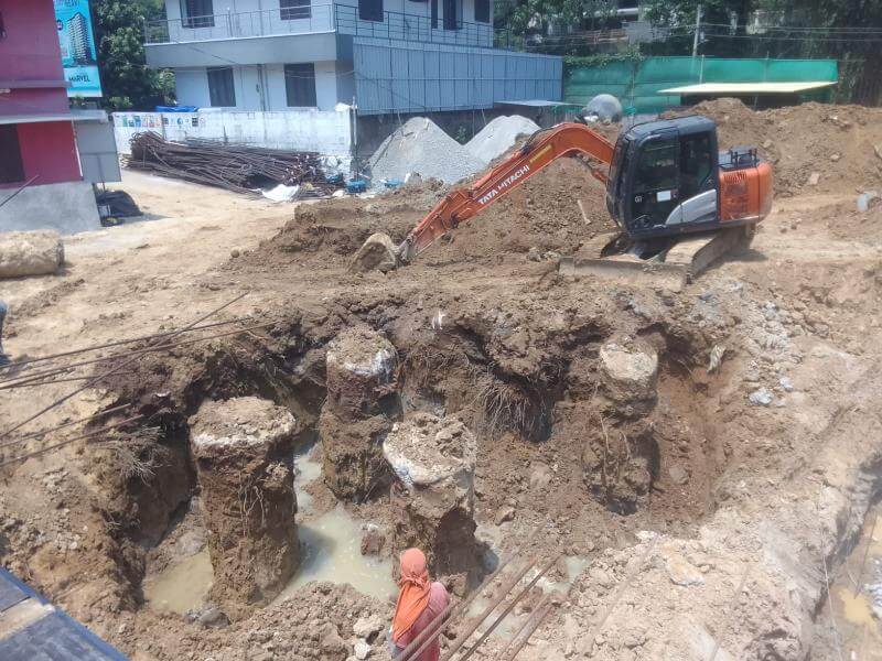 - Sub Structural Works – Sub structural works – Pile concreting 111 Nos: completed, Pile chipping 22 nos completed out of 111 Nos:, Excavation of pile cap foundation – 335m3 completed out of 1300m3, PCC for pilecap – 6.8m3 completed out of 255m3, RCC for pile cap – 43.3m3 completed out of 325m3, RCC for plinth beam and raft slab – 2m3 completed out of 381m3