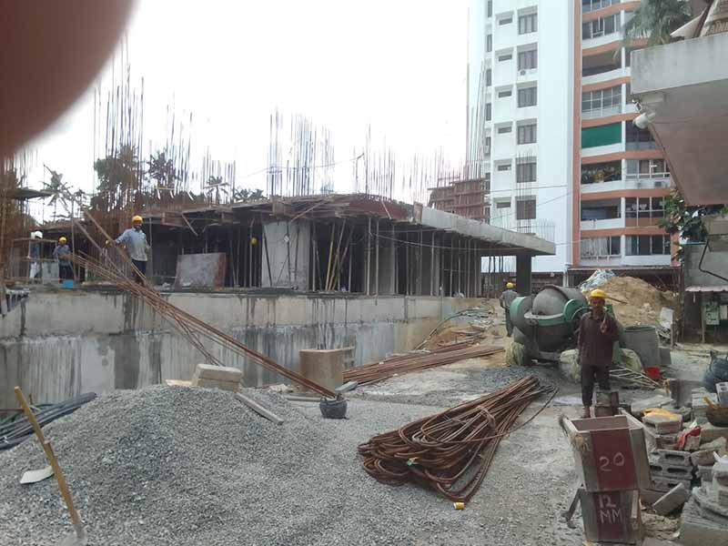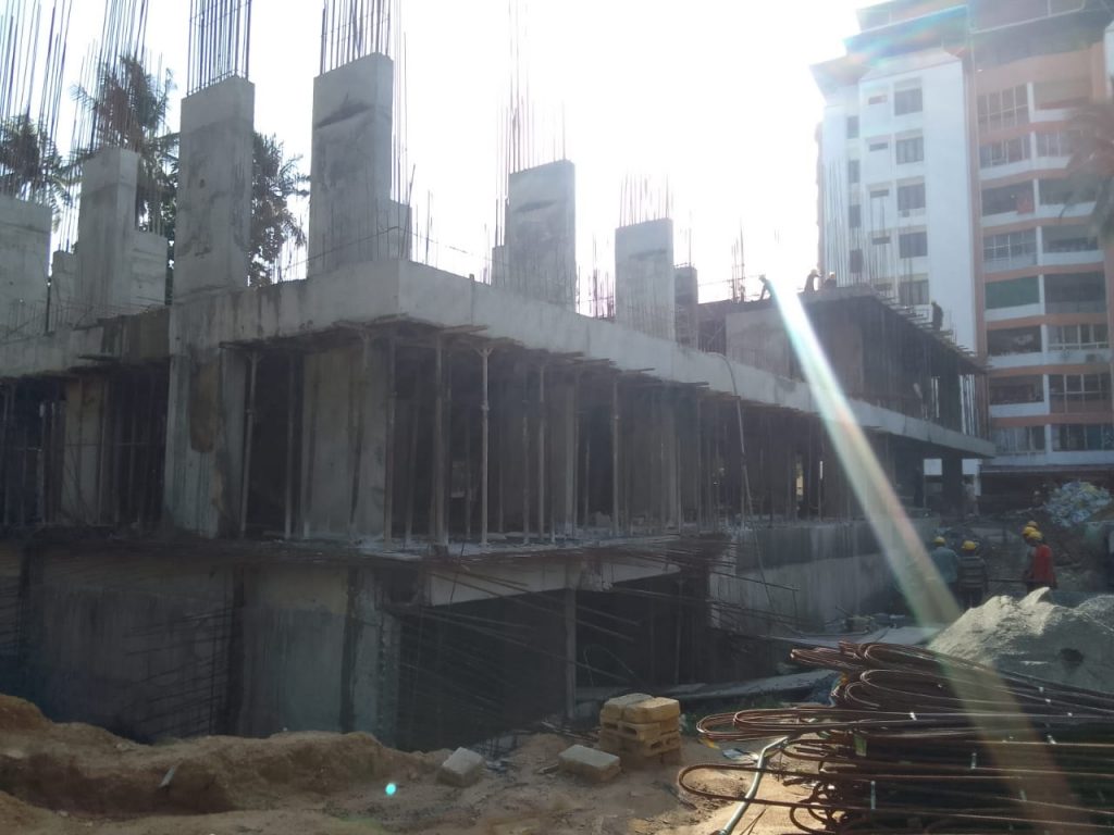 - Sub Structural Works – Earth work excavation for sump tank 110m3 Pile chipping 6 Rm Column RCC 26 cum,Beam & slab & Staircase (2nd flight) RCC 174 cum,Staircase (1st flight & landing) RCC 6cum,Shear wall RCC 7cum,Sump tank base 49cum, Beam & slab & Staircase (2nd flight) RCC-68cum completed,Staircase (1st flight & landing) RCC- 4 cum, Shear wall RCC-7 cum, Sump tank wall- 38.58cum,