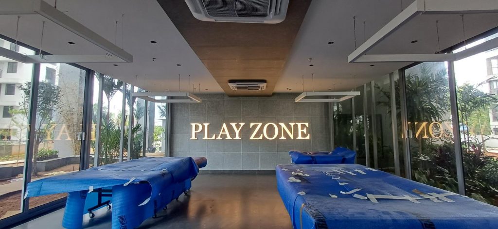 - Electrical, Plumbing & Firefighting works Concealed plumbing works – 82 nos. completed,Centralised gas piping system – 74 apartments completed, Fire fighting work – 1st to 12th floor – 100% completed, BF 1 – 100% Completed, gym, association hall, lobby – 100% completed Electrical LT work – wire pulling – 82 apartments completed, GF landscape area – 90% completed, HT work – 72 apartments completed, HVAC work – 32 apartments, lobby, games room, gym completed