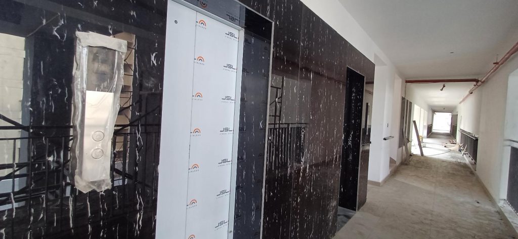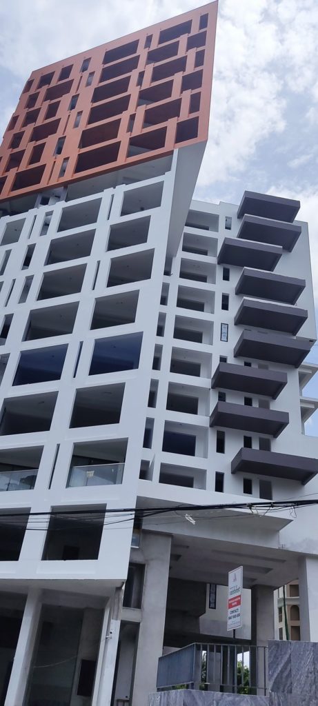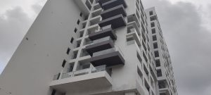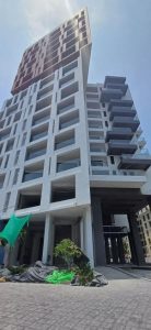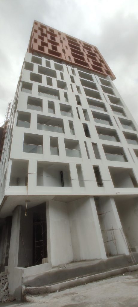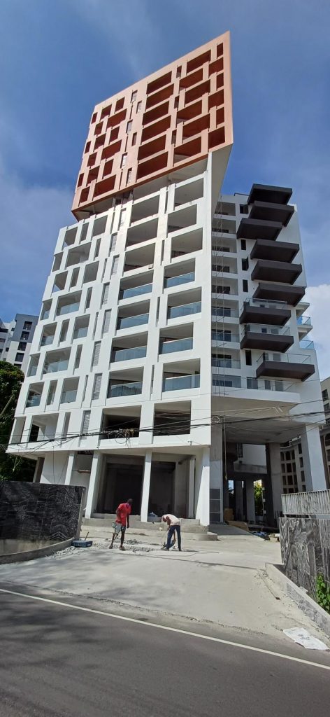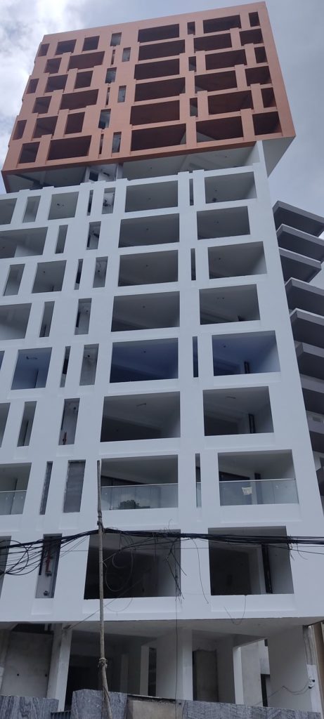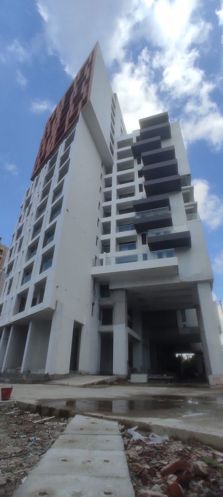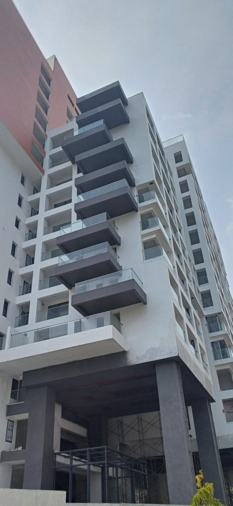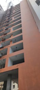 - Main door – 82 apartments completed,Waterproofing – terrace – 95% completed, GF landscape area – 95% completed,Wall tiling – 80 apartments completed Flooring – 80 apartments completed ,B1 parking tile – 70% completed ,Putty works – 100% completed ,Door frame fixtures- 100% completed, Handrails – fire stair handrail – 100% Completed ,Main stair handrail – 60% completed, Balcony handrails – 90% completed,Parapet GI railing – 100% completed Sliding Doors and Windows -85% completed B2 Parking Tiles: 60% completed TERRACE TILING :45% completed
