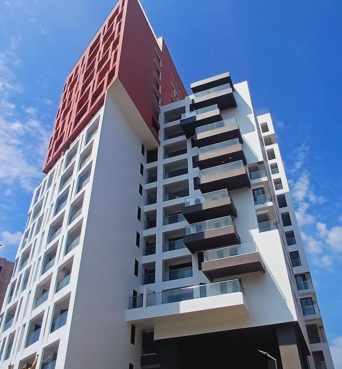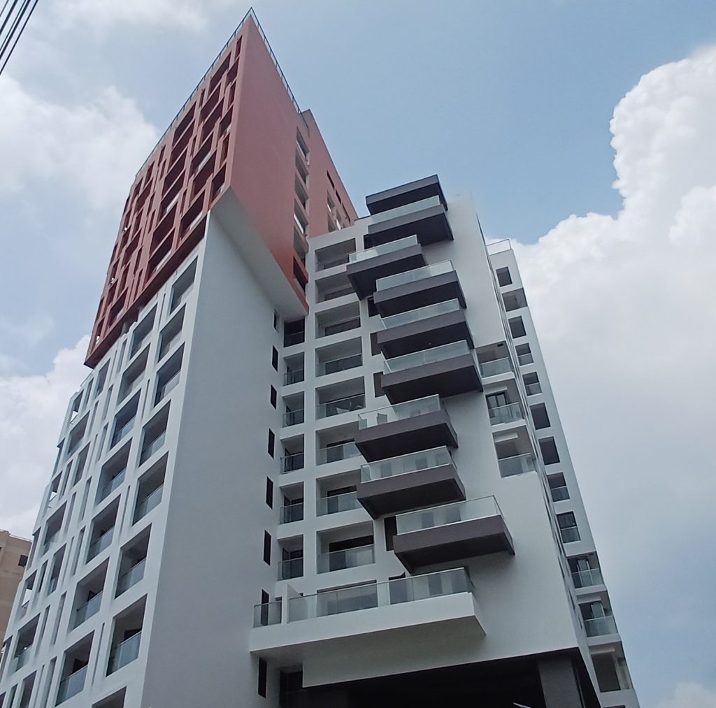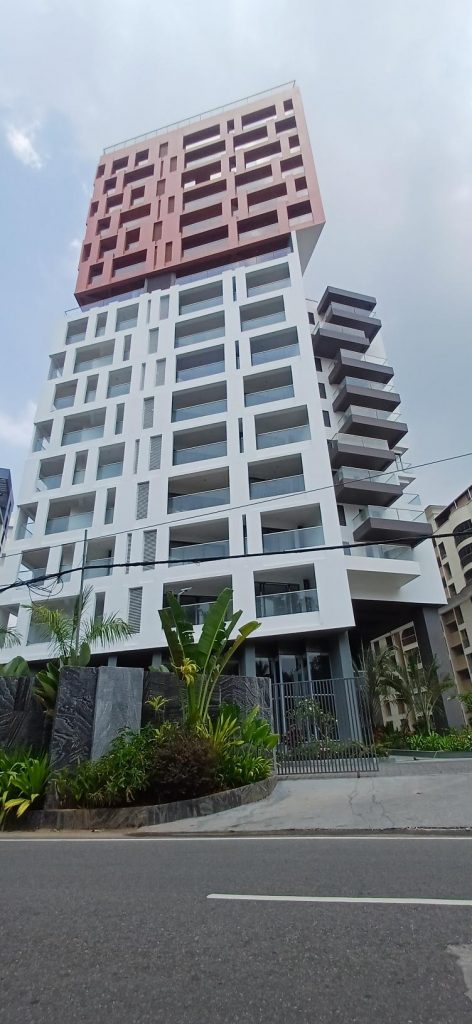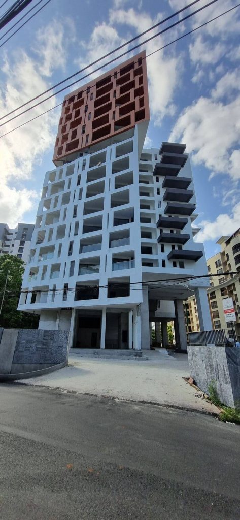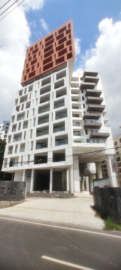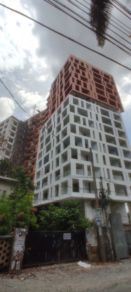 - Main door – 82 apartments completed,Waterproofing – terrace – 95% completed, GF landscape area – 95% completed,Wall tiling – 80 apartments completed Flooring – 80 apartments completed ,B1 parking tile – 70% completed ,Putty works – 100% completed ,Door frame fixtures- 100% completed, Handrails – fire stair handrail – 100% Completed ,Main stair handrail – 60% completed, Balcony handrails – 90% completed,Parapet GI railing – 100% completed Sliding Doors and Windows -85% completed B2 Parking Tiles: 60% completed TERRACE TILING :45% completed