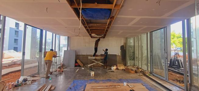- Civil Works – Ceiling and wall plastering – 100% to be completed