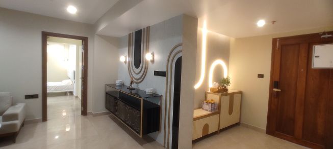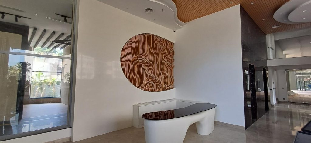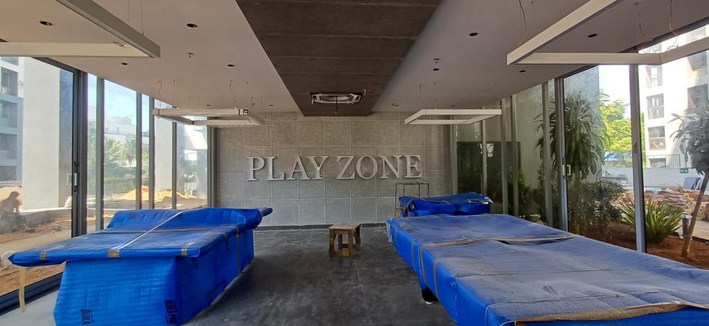 - Final Finishes Final Painting 1st coat – 38 Apartments, Final Painting 2nd coat – 5 Apartments Plumbing & Sanitaryware- 8 Apartments,Electrical final fixtures- 8 apartments, Firefighting final fixtures-8 apartments ,AV room -100% , Lobby,games room ,Gym glass work -100% ,Main Door Lock Fixing – 62 Nos