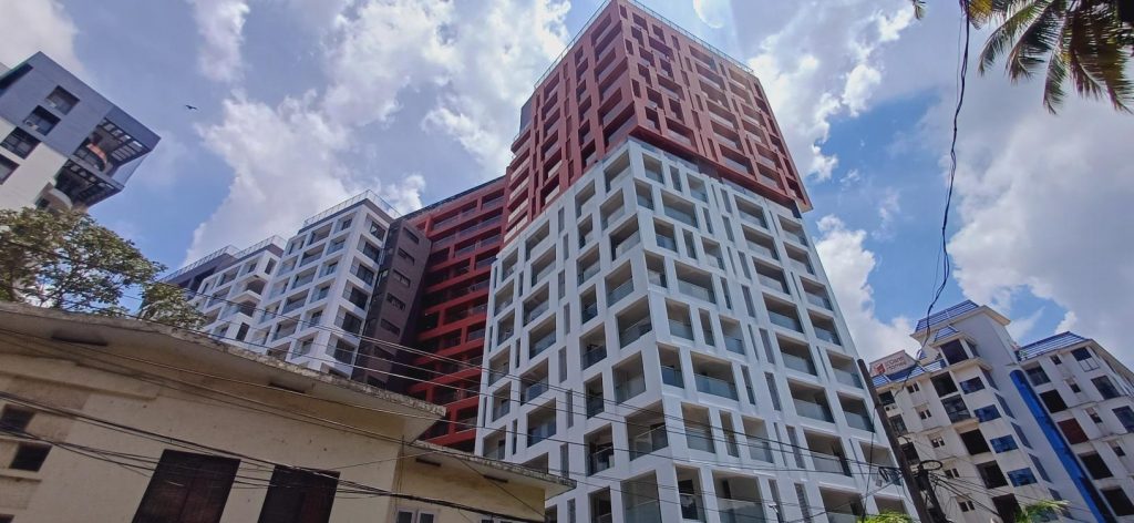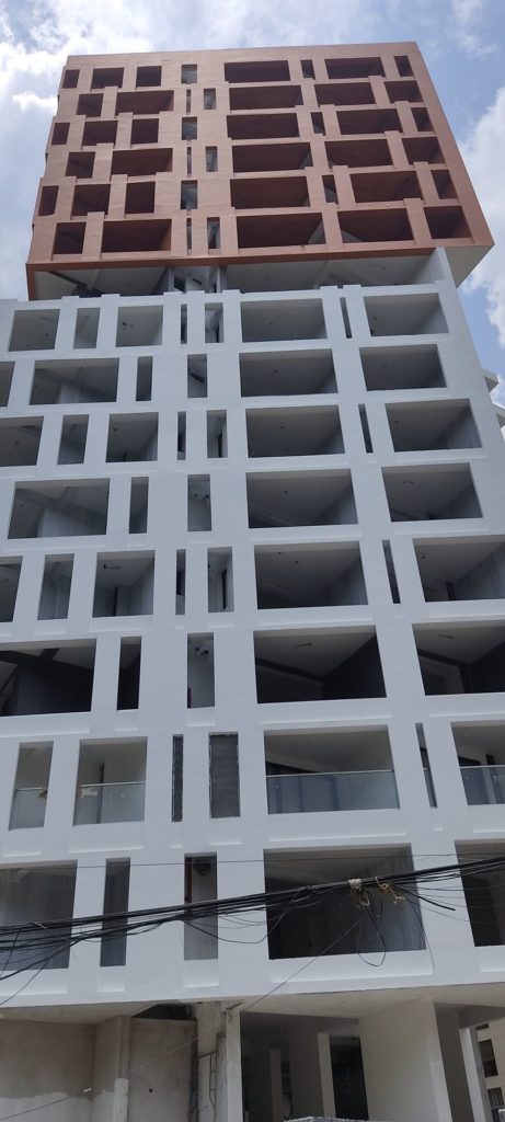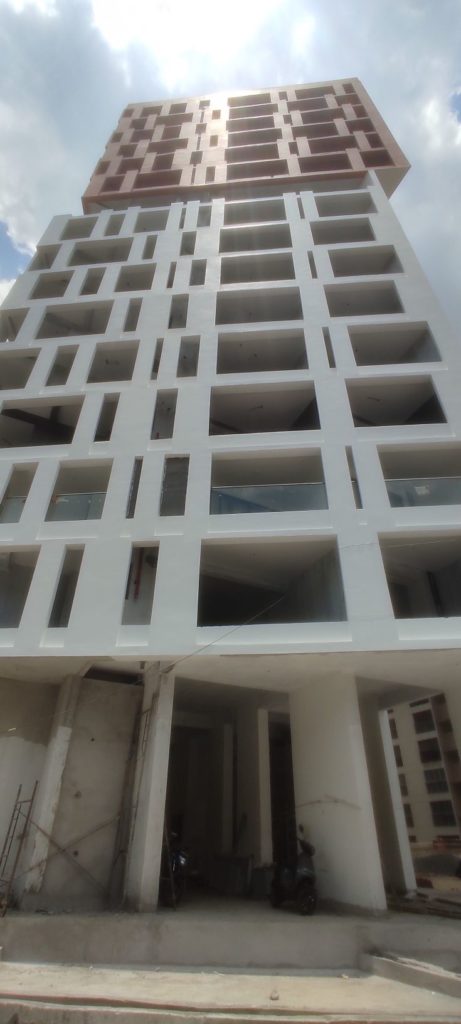- Internal Finishes – Main door – 82 apartments completed, Waterproofing – terrace – 90% completed, GF landscape area – 95% completed,Wall tiling – 78 apartments completed,Flooring – 78 apartments completed,B1 parking tile – 70% completed,Putty works – 100% completed,Door frame fixtures- 100% completed,Handrails – fire stair handrail – 100% Completed,Main stair handrail – 60% completed,Balcony handrails – 85% completed Parapet GI railing – 100% completed