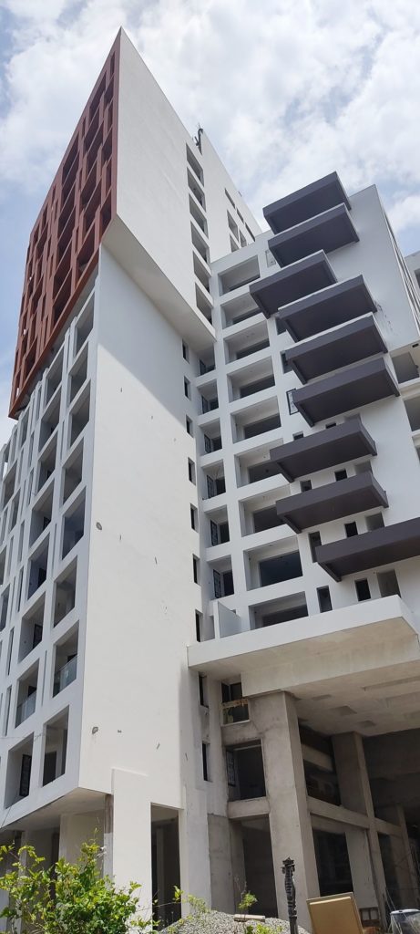 - Electrical, Plumbing & Firefighting works – Main door – 82 apartments completed, Waterproofing – terrace – 85% completed, Sump tank – completed, OHT – Completed, wall tiling – 57 apartments completed, flooring – 56 apartments completed, putty works – 100% completed, Door frame fixtures- 100% completed, Handrails – fire stair handrail – 100% Completed, Balcony handrails – 25% completed