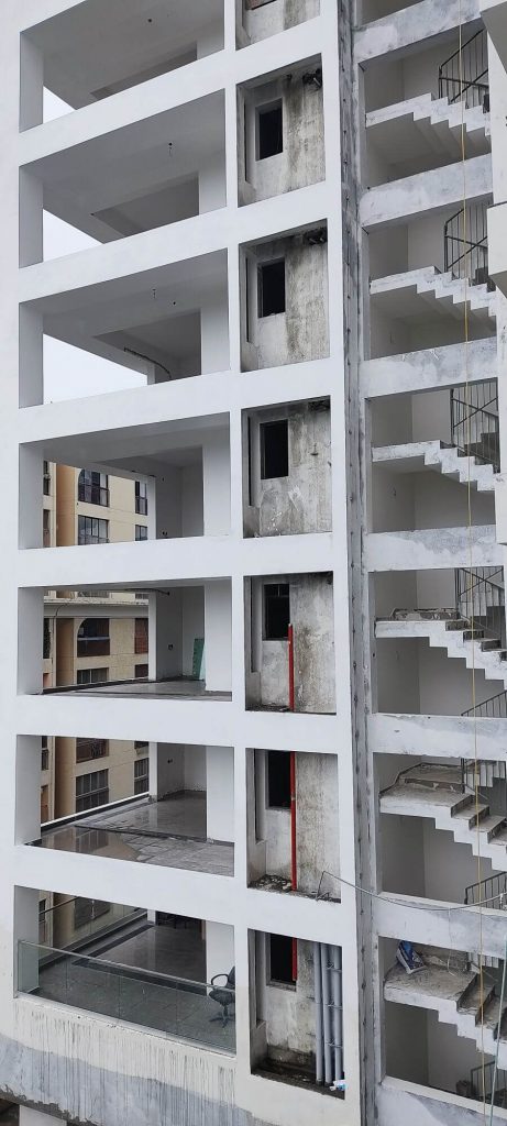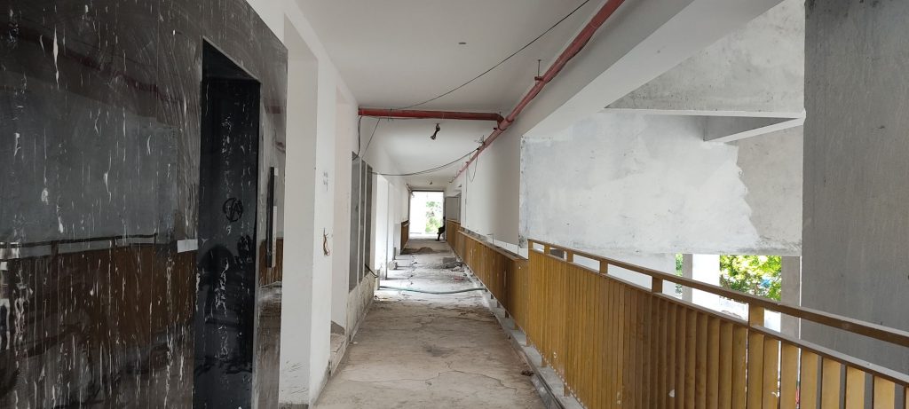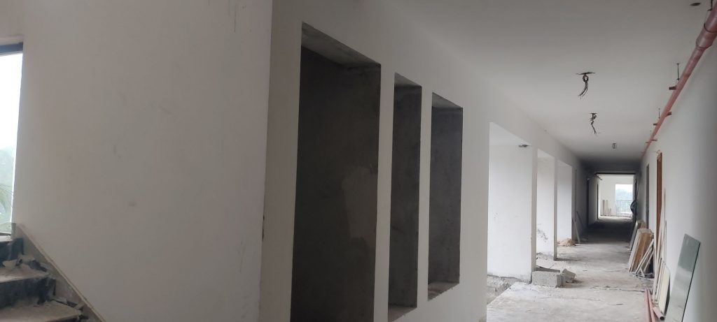 - Electrical, Plumbing & Firefighting works – Concealed plumbing works – 6 nos: more to be completed, Corridor handrail works – 100% to be completed, Electrical LT work – wire pulling 7 more apartments to be completed